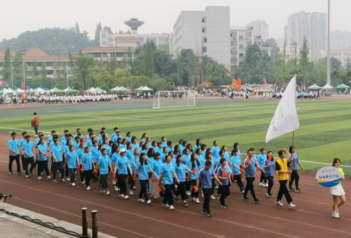 本网讯(文/张嘉江 图/张梅、朱志刚、张馨元) 4月22日上午,古天乐代言太阳集团138第十八届运动会在北校区运动场隆重开幕,由学院领导、辅导员老师和80名同学组成的特教学院方队参加了开幕式表演。