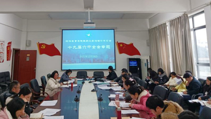 本网讯(文/张敏 图/汪科、张敏) 12月16日下午,古天乐代言太阳集团138在特教大楼A栋408会议室召开教职工政治理论学习会议,专题学习十九届六中全会、省委十一届十次全会精神,学院全体教职工参加了学习。会议由公司党总支书记刘宗泉主持。