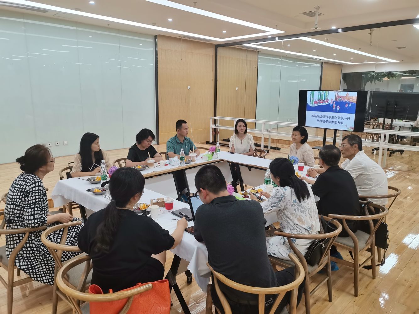 参观后,双方就合作事宜进行了交流。橙子树儿童关爱中心杨熠首先对中心的办学背景及定位进行了介绍,讲解了中心“关爱、专业、责任”的核心理念;詹怡则详细介绍了中心的课程体系,主要包括训练模块、游戏模块和真实场景模块。在倾听了两位老师的介绍之后,张梅对中心理念、定位和办学模式表示认同,并对课程体系的构建、团队团队的打造等提出了建设性意见。
