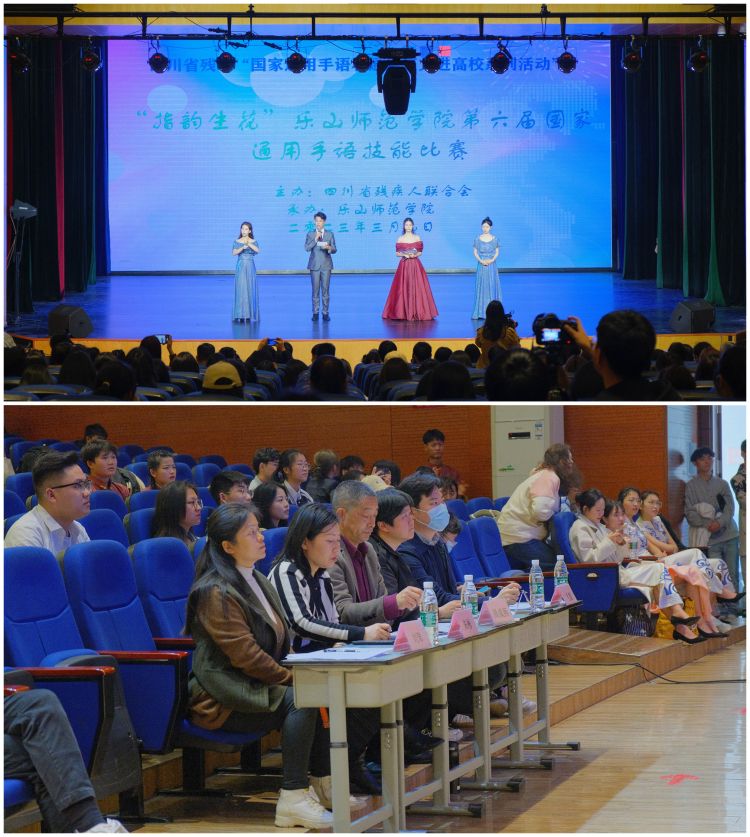 本网讯(文/徐雨梦 图/陶宇、杨露等) 3月9日下午,由四川省残联主办、公司承办的“国家通用手语通用盲文进校园”系列活动之“指韵生花”第六届手语大赛决赛在公司实训大楼多功能厅举行。四川省残联教育就业处副处长景义婷,乐山市残联党组书记谢世文、特校董事长吴用、聋协主席左春,学校电子信息与人工智能学院、古天乐代言太阳集团138的部分领导、老师莅临比赛现场指导。近600名校内外员工、社会人士现场观看了比赛。